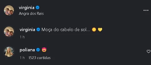 A ex-sogra de Virginia, Poliana Rocha — mãe do cantor Zé Felipe — reagiu à publicação com um emoji apaixonado, demonstrando apoio e carinho pela influenciadora e deixando claro que a boa relação entre elas permanece, mesmo após o término do casamento. Além de exibir sua boa forma, Virginia também mostrou momentos descontraídos com os filhos, reforçando sua imagem de mãe presente e dedicada.