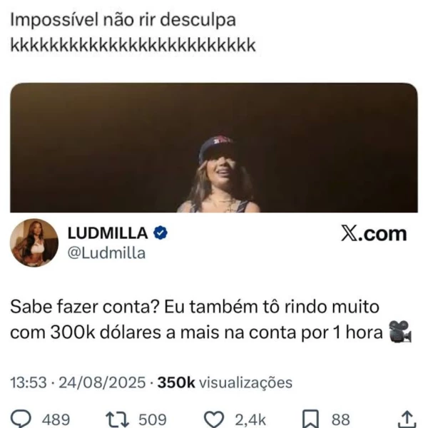 A resposta de Ludmilla foi vista como uma forma de transformar a crítica em autopromoção. Além de exibir transparência, a artista demonstrou segurança ao destacar o reconhecimento financeiro que vem conquistando fora do Brasil.