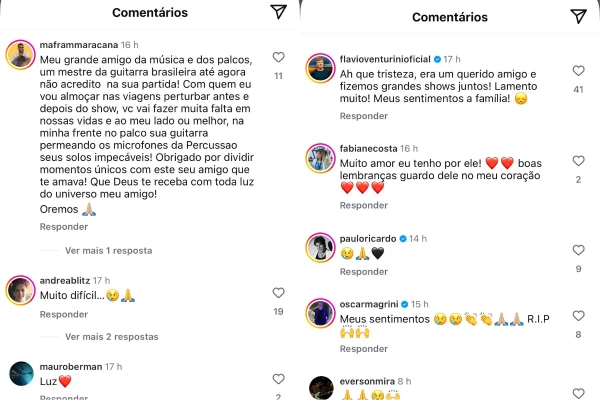 “Perdemos um grande guitarrista brasileiro, meu compadre Rogério Meanda, que brilhou nos estúdios e nos palcos e fez parte da trilha sonora de todos nós.”